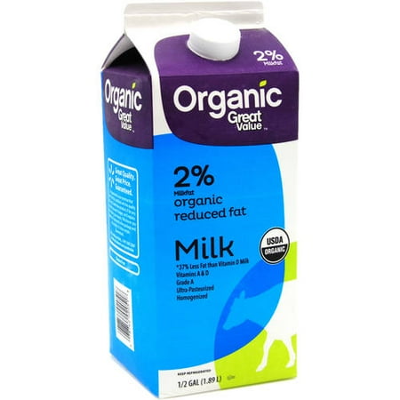 Great Value Organic 2 Reduced Fat Unflavored Milk Half Gallon